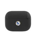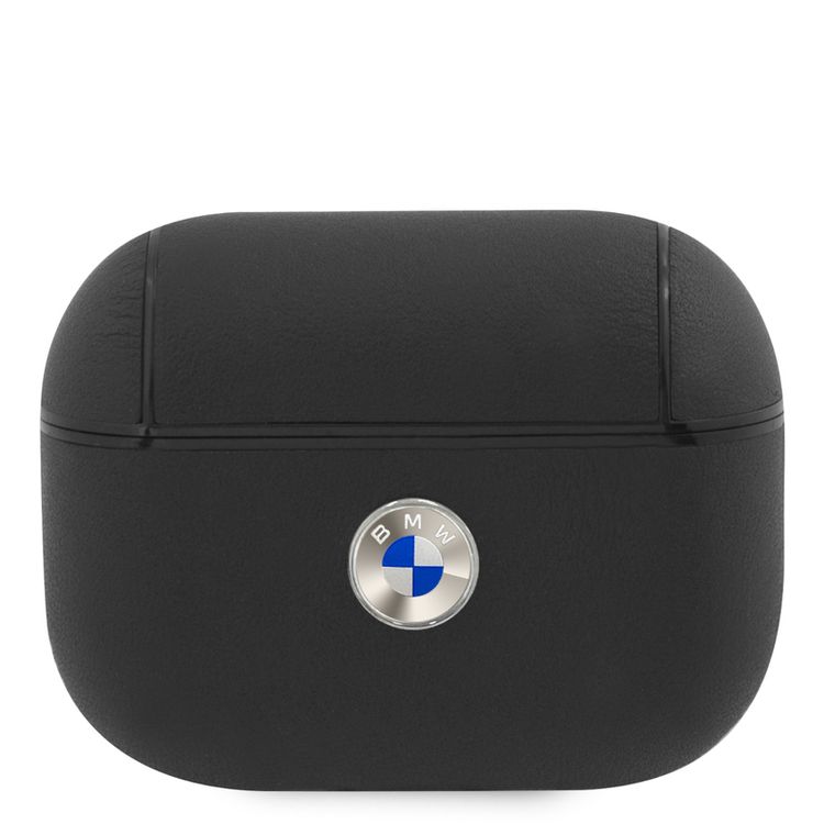 بي أم دبليو جراب من الجلد الأصلي للكمبيوتر الشخصي مع شعار معدني فضي لسماعات ايربودز برو ، مضاد للصدمات - أسود