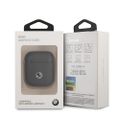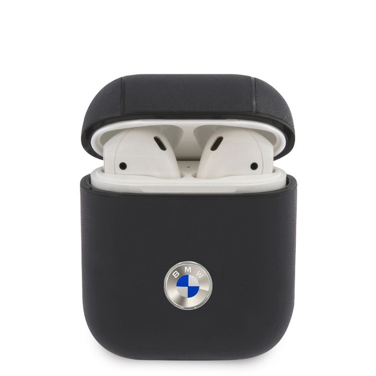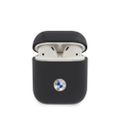 بي أم دبليو جراب من الجلد الأصلي للكمبيوتر الشخصي مع شعار معدني فضي لسماعات ايربودز 1/2 ، مضاد للصدمات - كحلي