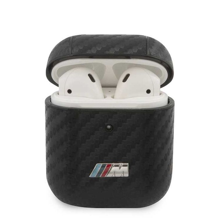 جراب CG Mobile BMW M Collection PC PU Carbon مع شعار معدني متوافق مع AirPods 1/2 مرخص رسميًا ، مقاوم للأتربة ، مقاوم للخدش ، مقاوم للأوساخ - أسود
