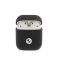 CG Mobile مجموعة BMW Signature غلاف PC جلد طبيعي مع شعار معدني فضي، عالي الجودة، لأجهزة Airpods 1/2، مرخص رسميًا - أسود