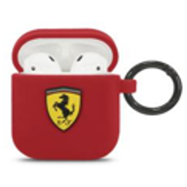 سي جي موبايل فيراري سكوديريا جراب سيليكون بحلقة متوافق مع ايربودز 1/2 ، مقاوم للخدش ، ممتص للصدمات ، حماية من السقوط ، وغطاء سيليكون واقٍ من الغبار مرخص رسميًا
