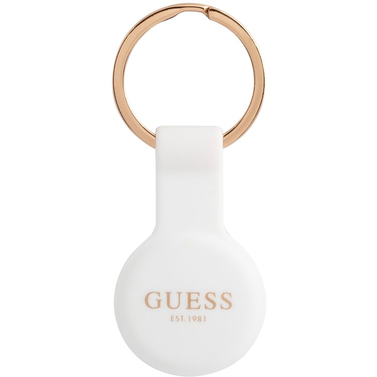 CG MOBILE Guess Silicone Classic Logo Case with Keychain for Airtag, Anti-Lost Holder with Key Ring, Easy to Attach Keys, Backpacks, Liner Bags Officially Licensed White