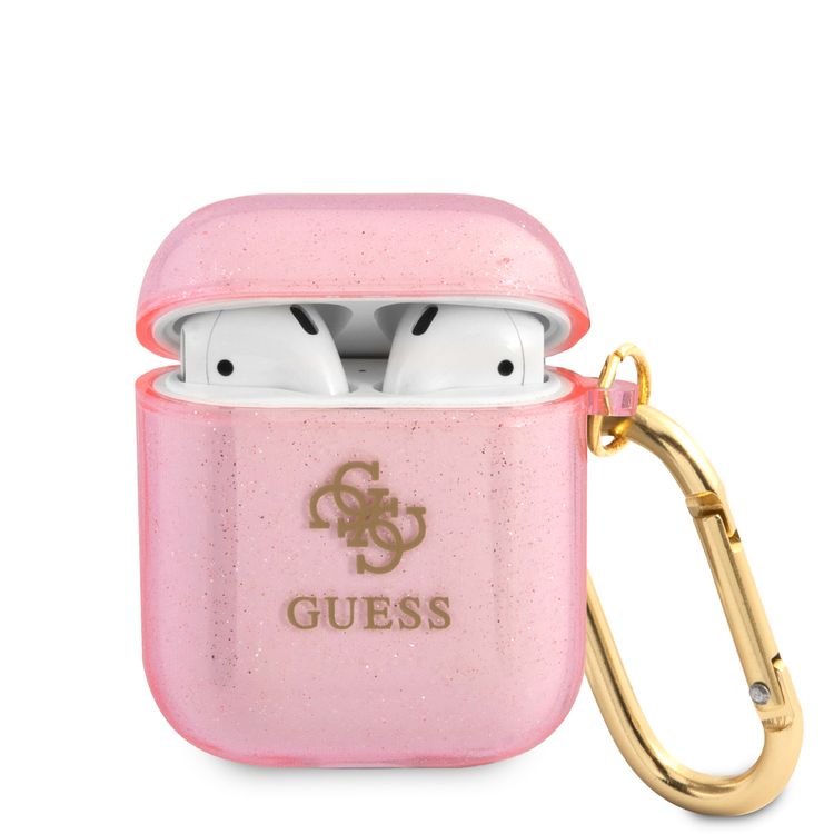 جراب سي جي موبايل من غيس تي بي يو ملون لامع مع حلقة مضادة للفقد متوافقة مع ايربودز 1/2 ، مقاوم للخدش والسقوط ، غطاء سيليكون واقٍ ومقاوم للغبار وممتص مناسب مع شواحن لاسلكية مرخصة رسميًا - وردي