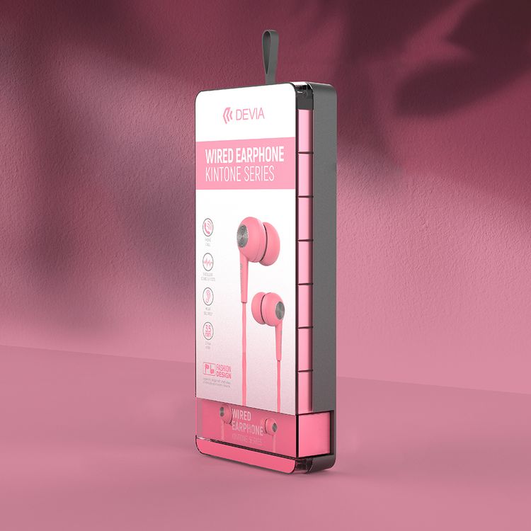Devia Idrawer Series In-Ear Wired Earphone with Noise Reduction Compatible for Smartphones - High Quality Sound Headset - Ergonomic Ear Cap Design - 3.5mm Audio Connector - Pink