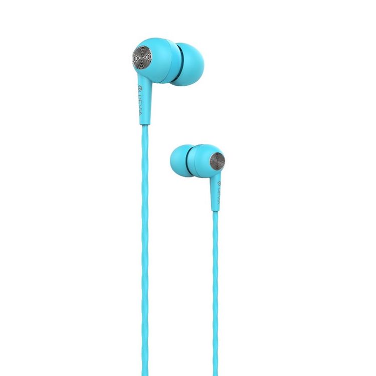 Devia Idrawer Series In-Ear Wired Earphone with Noise Reduction Compatible for Smartphones - High Quality Sound Headset - Ergonomic Ear Cap Design - 3.5mm Audio Connector - Blue