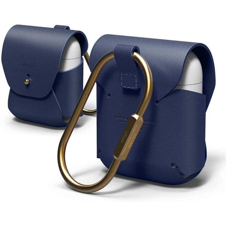 إيلاجو جراب جلد أصلي لسماعات ابل ايربودز 1 و 2 ، مقاوم للخدش ، مقاوم للسقوط ، مقاوم للغبار وغطاء ماص مع جراب معلق لسماعات ابل ايربودز 1/2 ، متوافق مع علبة الشحن اللاسلكي ، أسود
