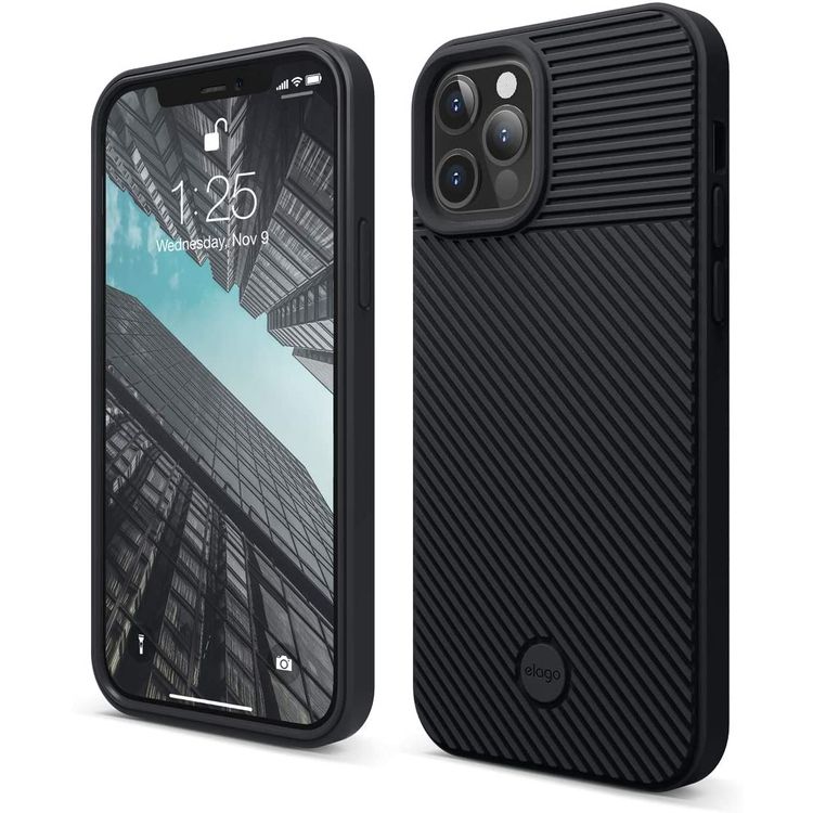 إيلاجو جراب وسادة من مادة بولي اليوريثان الحراري متوافق مع ايفون 12 بروماكس (6.7 بوصة) ، شريط حافة ، جراب ممتص للصدمات رائع ، متوافق مع الشحن اللاسلكي - أسود