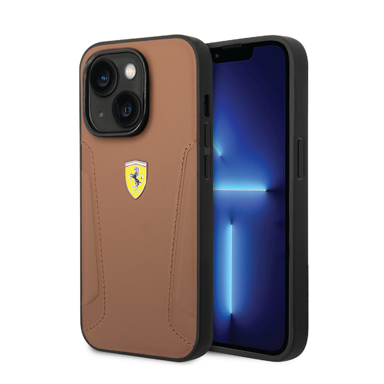 حقيبة فيراري الجلدية مع جوانب مختومة وشعار الدرع الأصفر - آيفون 14 - جمل