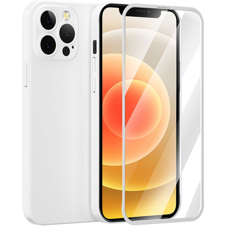 أبيض - غرين 360 جراب كارساكا بلس مع زجاج عالي الدقة لهاتف آيفون 13 برو