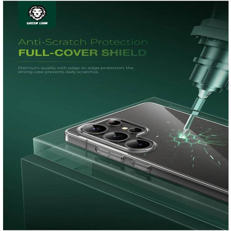 جراب Green Lion Delgado PC لهاتف Samsung S25 Ultra، جراب من البولي كربونات، مضاد لبصمات الأصابع ومضاد للاصفرار، فتحات دقيقة، وضوح عالي، حماية يومية، مادة صديقة للبيئة - شفاف