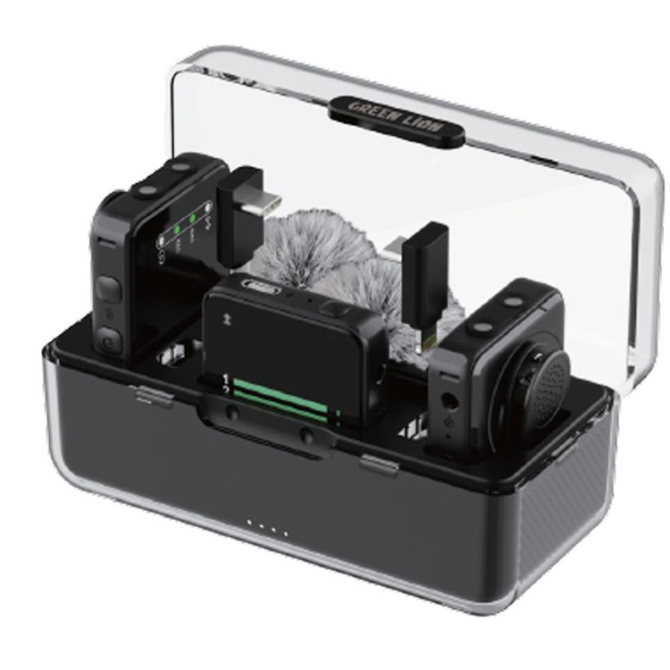 ميكروفون لاسلكي احترافي من Green Lion GLM، التقاط 360 درجة، صغير الحجم وقابل للحمل، مع خاصية إلغاء الضوضاء البيئية - أسود