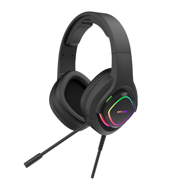 سماعة الألعاب جرين ليون GP32X مع ميكروفون مانع للضوضاء، صوت عالي الوضوح، أضواء بثلاثة ألوان، منفذ صوت 3.5، انحناء 360°، مريحة للارتداء - أسود