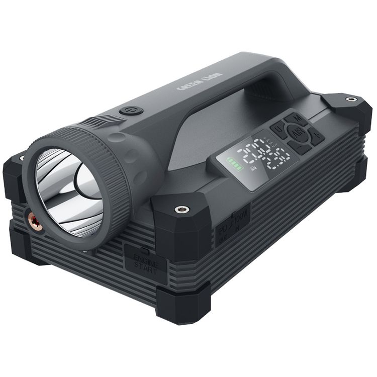 قافز بدء التشغيل جرين ليون JX66 مع مضخة هواء مدمجة، سعة بطارية 24000 مللي أمبير في الساعة، محولات الفوهة، مشابك ذكية للقفز، خرطوم قابل للنفخ، شاشة رقمية، بنك طاقة PD 65W - أسود
