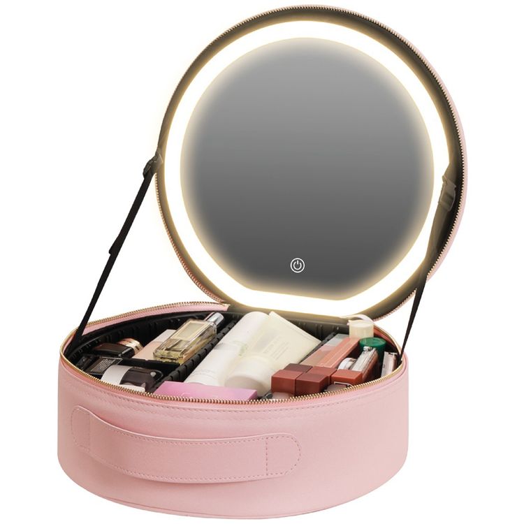 منظم مكياج جرين ليون برو مع مرآة 4K، مقبض مريح، مقاوم للماء، مناسب للسفر، قسم قابل للتعديل، بطارية 2000 مللي أمبير - وردي