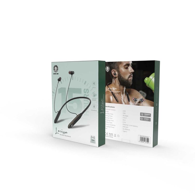 جهاز "Green Lion Larissa" اللاسلكي للرقبة مع أزرار تحكم، ميكروفون، سعة بطارية 210mAh، ومسافة انتقال 12 متر - أسود