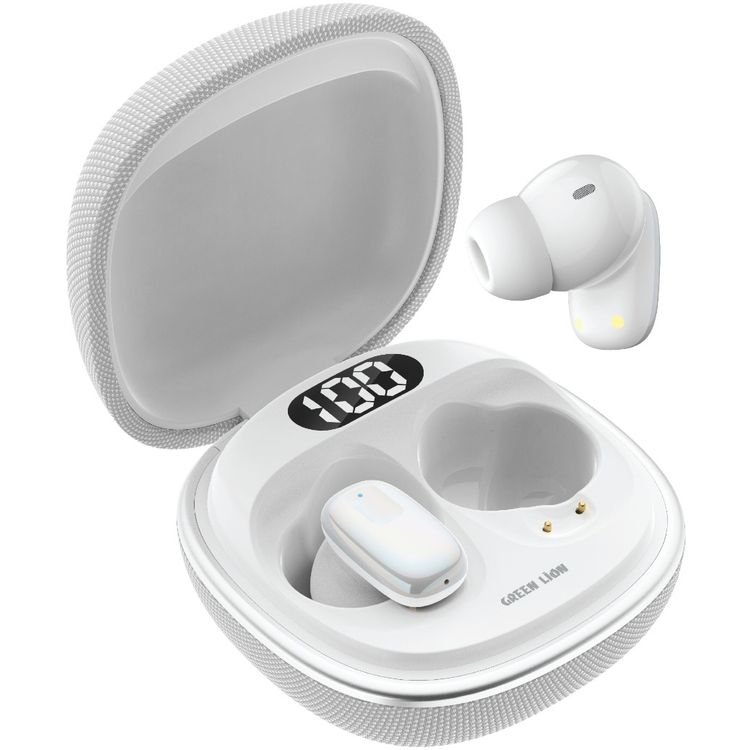 سماعات الأذن اللاسلكية الحقيقية Green Lion SIENA، مقاومة للماء بمعيار IPX5، شاشة عرض رقمية LED، إصدار البلوتوث 5.4 - أبيض