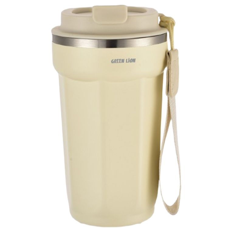 كوب تفريغ جرين ليون، سعة 380 مل، مصنوع من الفولاذ المقاوم للصدأ، عازل حراري بجدار مزدوج، تصميم فاخر - بيج