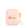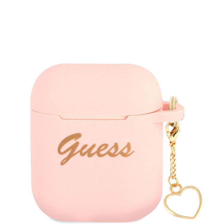 جيس GUA2LSCHSP حافظة سيليكون لأجهزة ابل إيربودز 1/2 و مجموعة ساحرة مع خاتم شكل قلب - وردي
