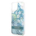 كفر حماية Guess Liquid Glitter بتصميم الزهور، لامع للغاية، ملمس ناعم، متوافق مع iPhone 14 - أخضر