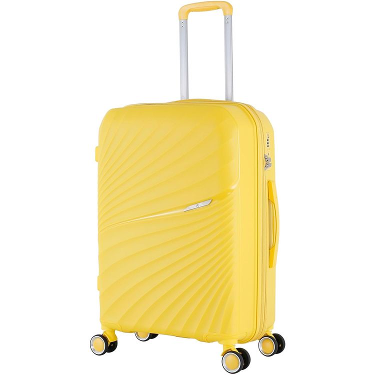 حقيبة أمتعة H.T، حافظة صلبة من مادة البولي بروبيلين (PP)، قابلة للتمدد، مقبض تلسكوبي، مقاومة للخدش، قفل TSA، حجم كبير - أصفر