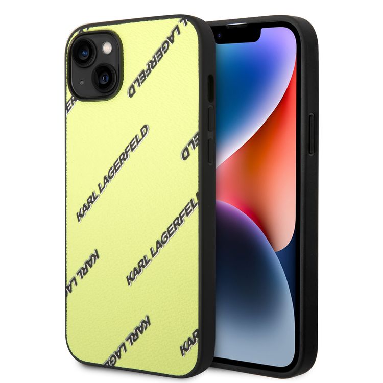 Karl Lagerfeld Grained PU Leather Case with Logomania Pattern iPhone 14 Plus Compatibility - Green