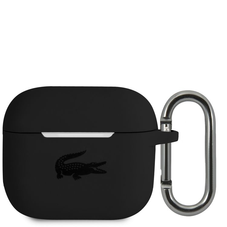 حافظة لاكوست من السيليكون السائل Airpods مع شعار الطباعة اللامع AirPods 3 - أسود