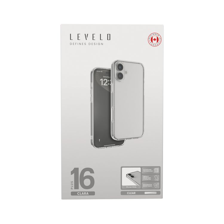 جراب Levelo Clara لهاتف iPhone 16 Pro Plus بتقنية Clearview ومقاومة للخدش 3H - شفاف