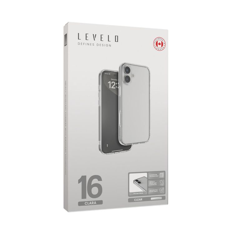 جراب Levelo Clara لهاتف iPhone 16 بتقنية Clearview ومقاومة للخدش 3H - شفاف