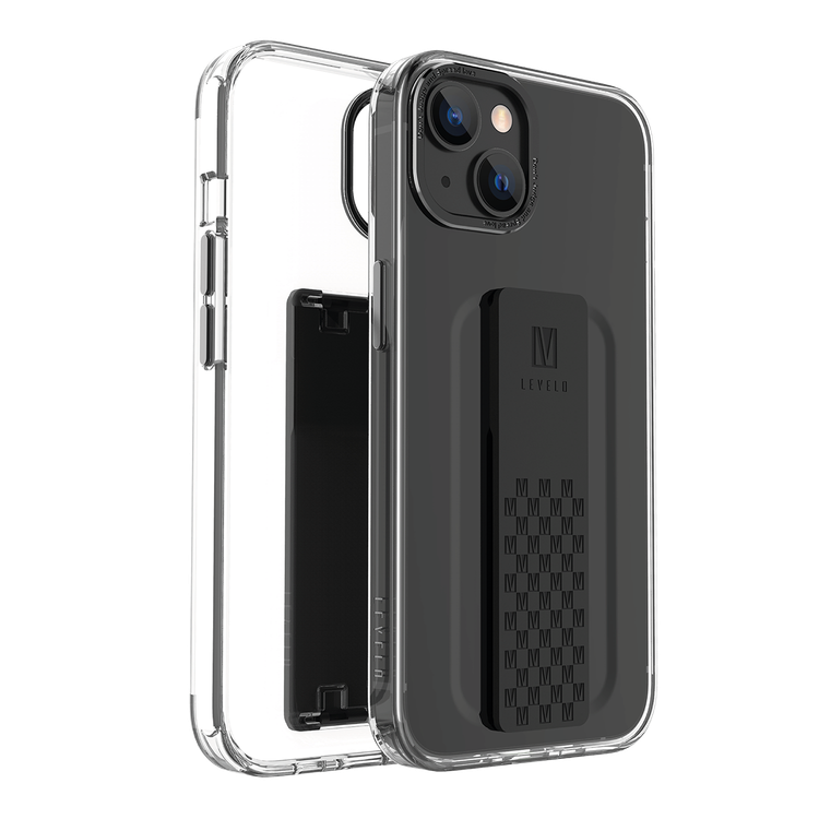غلاف ليفيلو جرافييا IMD الشفاف مع قبضة إضافية لجهاز آيفون 14 بلس - أسود