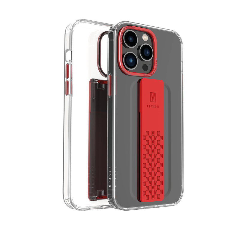 غلاف Levelo Graphia IMD الشفاف مع قبضة إضافية لهاتف آيفون 14 برو - أحمر