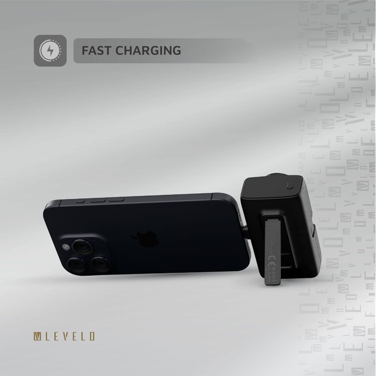 باور بانك محمول من Levelo Nova Mini بسعة 5000 مللي أمبير في الساعة، 20 وات PD، منافذ Type-C وLightning قابل للدوران، ومخرجات لاسلكية وiWatch، وحامل مدمج، ومؤشر بطارية LED - أسود