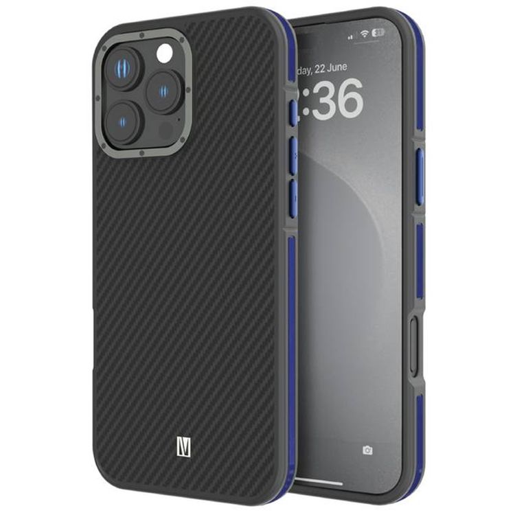 حافظة ليفيليو اوكس كاربون لهاتف ايفون 16 برو، متوافقة مع ماج سيف، طلاء غير لامع، مضادة لبصمات الأصابع - ازرق