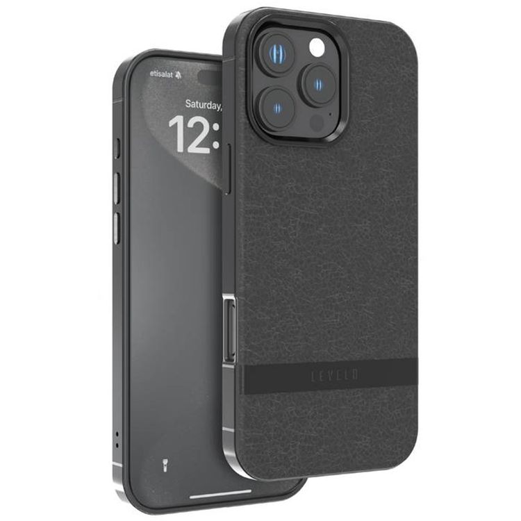 كفر ليفيليو بيلي الجلدي لجهاز آيفون 16 برو مع مصد من الألومنيوم وزوايا مقاومة للصدمات وتوافق مع ماج سيف وخفيفة الوزن ونحيفة - أسود