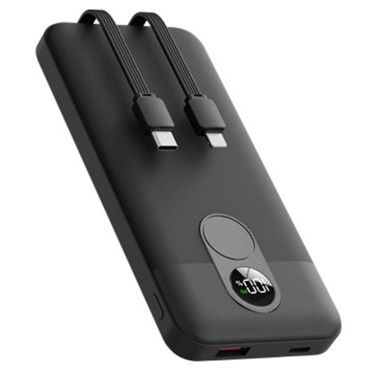 بورودو بطارية متنقلة بقدرة 10000 مللي أمبير مع كابل مدمج من نوع Type-C وLightning، توصيل طاقة بقوة 22.5 واط، شحن متزامن، شحن من 0% إلى 60% في 35 دقيقة، عرض رقمي - لون أسود