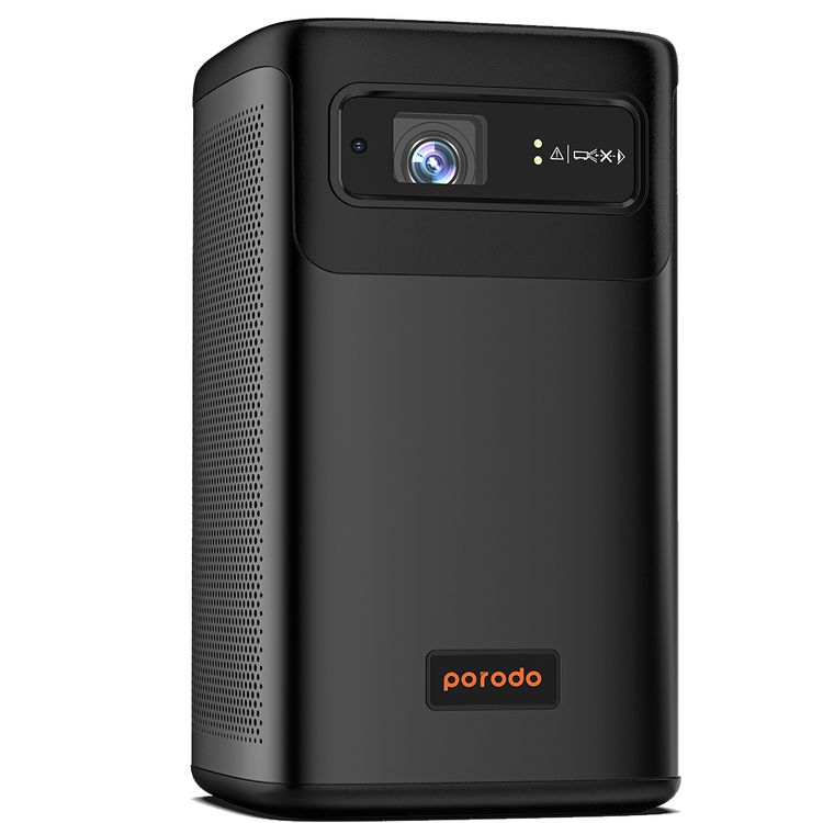 بروجكتور Porodo محمول بتقنية DLP مع النسخ اللاسلكي لنظامي iOS و Android، بطارية بسعة 8000mAh، وقت العمل من 2 إلى 3 ساعات، سطوع 180 ANSI، نسبة الشاشة 16:9، مكبرين صوت مدمجين - أسود