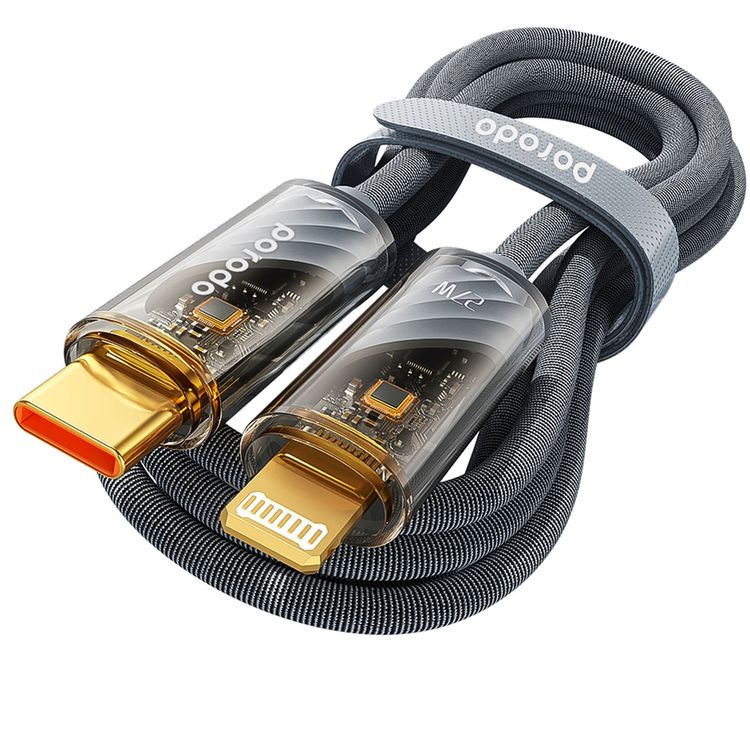 بورودو كابل مضفر رمادي 1 متر PD27W USB-C إلى Lightning مع رأس شفاف
