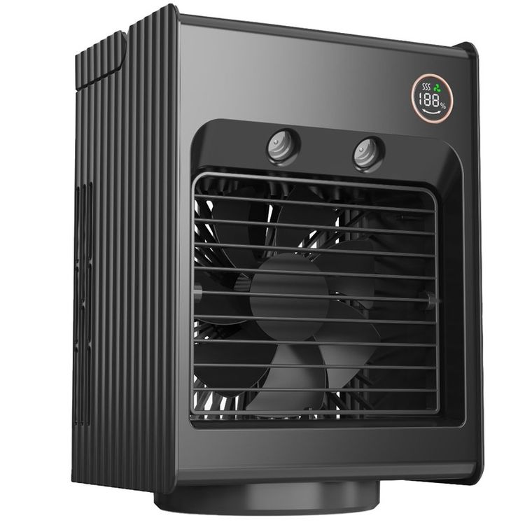 مروحة تبريد محمولة بالهواء والرذاذ من بورودو لايف ستايل مع إضاءة ليلية وتذبذب، سعة بطارية 4000 مللي أمبير في الساعة، شاشة رقمية، مدمجة ومحمولة، منفذ رذاذ مزدوج، منفذ شحن من النوع C، صينية مكعبات الثلج متضمنة - أسود