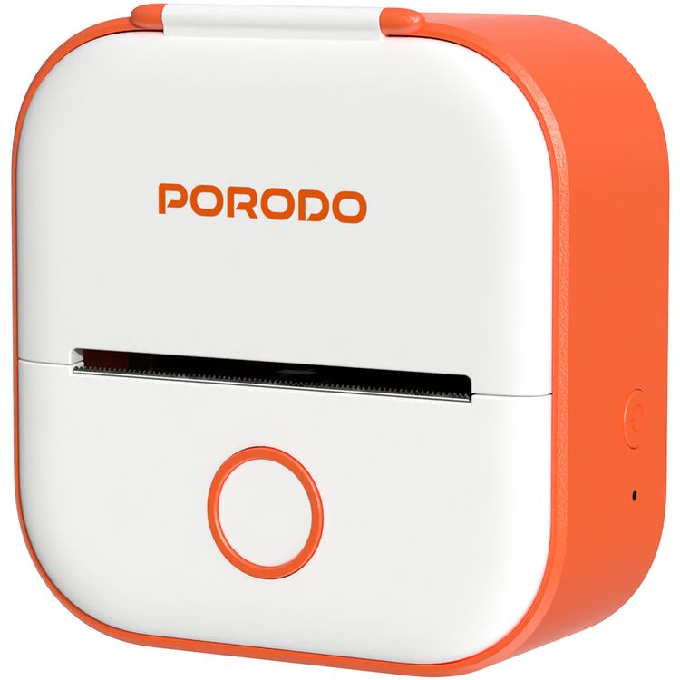 طابعة حرارية Porodo Lifestyle Pocket HD بسعة بطارية 1000 مللي أمبير، ووقت عمل 1.5 ساعة، ووقت شحن 2.5 ساعة، ومنفذ شحن من النوع C، وطباعة بدون حبر، وعرض ملصق 50 مم، ودقة عالية - برتقالي/أبيض