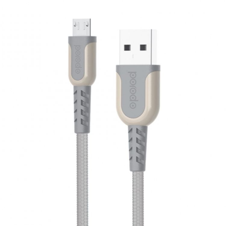 كابل Micro USB مضفر معدني من Porodo بطول 1.2 متر، شحن سريع، عمر افتراضي يصل إلى 15000+ ثنية، نقل بيانات مستقر، تصميم مميز - رمادي