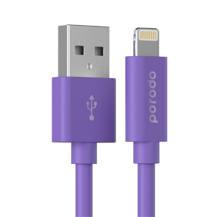 كابل Porodo PVC متوافق مع أجهزة Lightning 1.2 متر 2.4 أمبير، مزامنة وشحن سريع للبيانات - لافندر