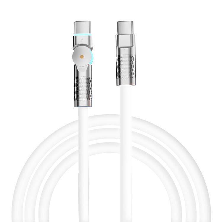 كابل بورودو دوار برأس واحد مع موصل شحن ونقل بيانات من النوع C إلى النوع C وPD100W أبيض - 1 م