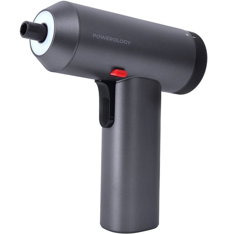 مسدس مفك براغي كهربائي من باورولوجي، 30 بت، 2200 مللي أمبير، 6 مستويات سرعة، 220 دورة في الدقيقة، منفذ شحن، وقت عمل لمدة ساعتين، مؤشر طاقة 4 شبكات - رمادي فضائي