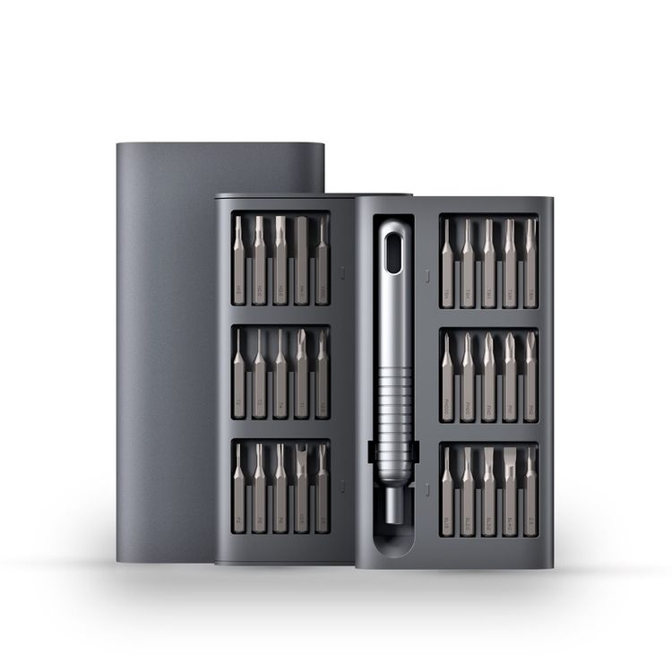 طقم مفكات براغي من الفولاذ المقاوم للصدأ مكون من 31 قطعة من باورولوجي، مقبض وبتات من الفولاذ S2، هيكل من الألومنيوم، قبضة مثالية - رمادي