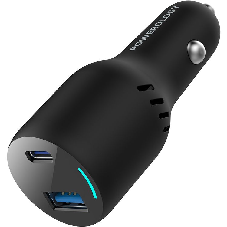شاحن سيارة باورولوجي ثنائي المنافذ مع PD 65 وات و QC3.0 18 وات، منافذ USB-A و USB-C، مصنوع من مادة PC و ABS، حماية مدمجة، شحن سريع، تصميم حاصل على براءة اختراع، شاحن كمبيوتر محمول - أسود