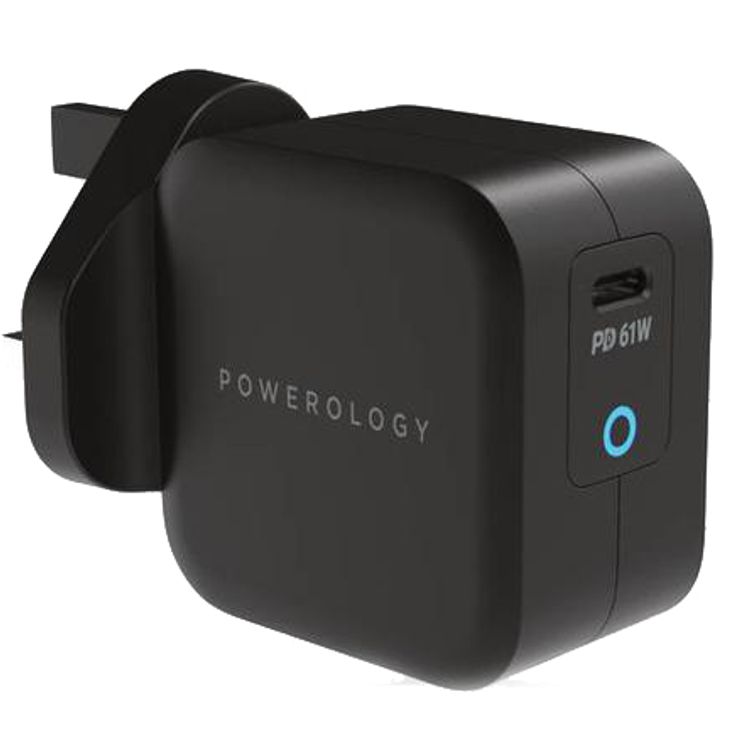شاحن Powerology المضغوط للغاية 61 واط PD GaN - أسود