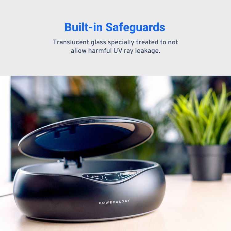 صندوق معقم بالأشعة فوق البنفسجية العالمي من باورولوجي مع شحن لاسلكي 15 وات - أسود