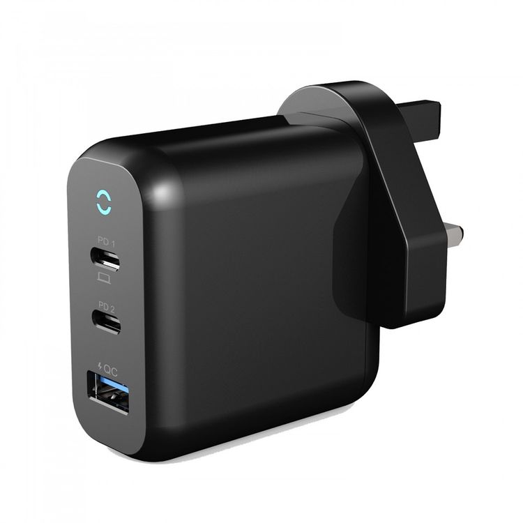 شاحن حائط باورولوجي المملكة المتحدة 65 وات 3 مخارج مع PD UK GaN - (أسود)