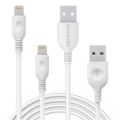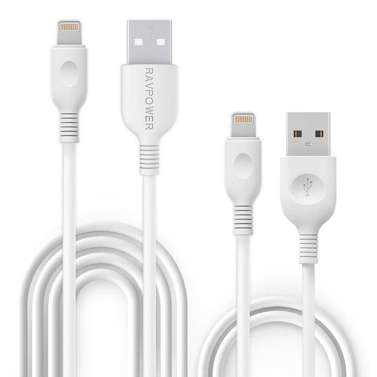 RAVPower 2 Pack Cable Compatible for iPhone Lightning Devices - Soft & Fire-Resistant TPE Connector - Fast Charging Cord - Long Lasting Durable Cable - White