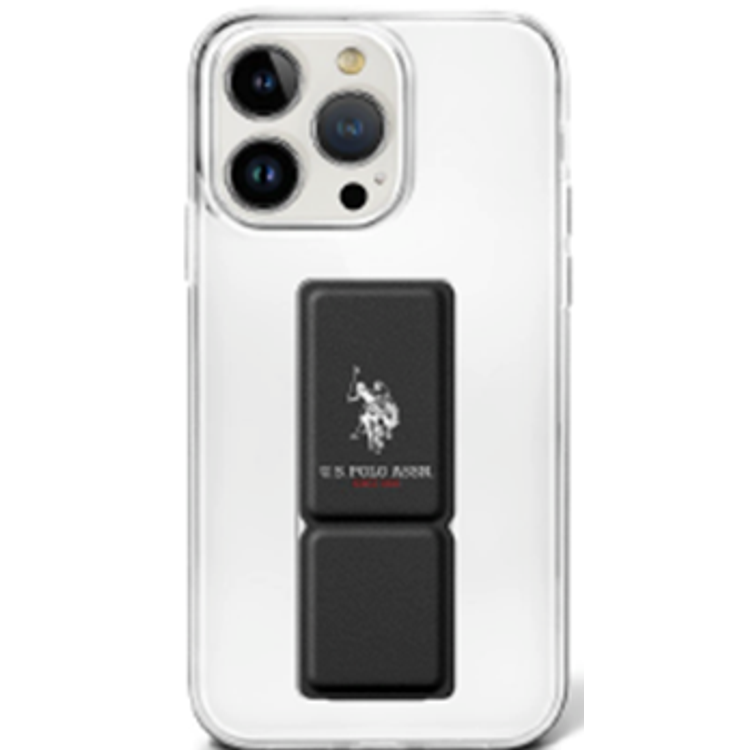 يو اس بولو أسن. حافظة شفافة لهاتف آيفون 15 برو بمقبض جلدي - أسود