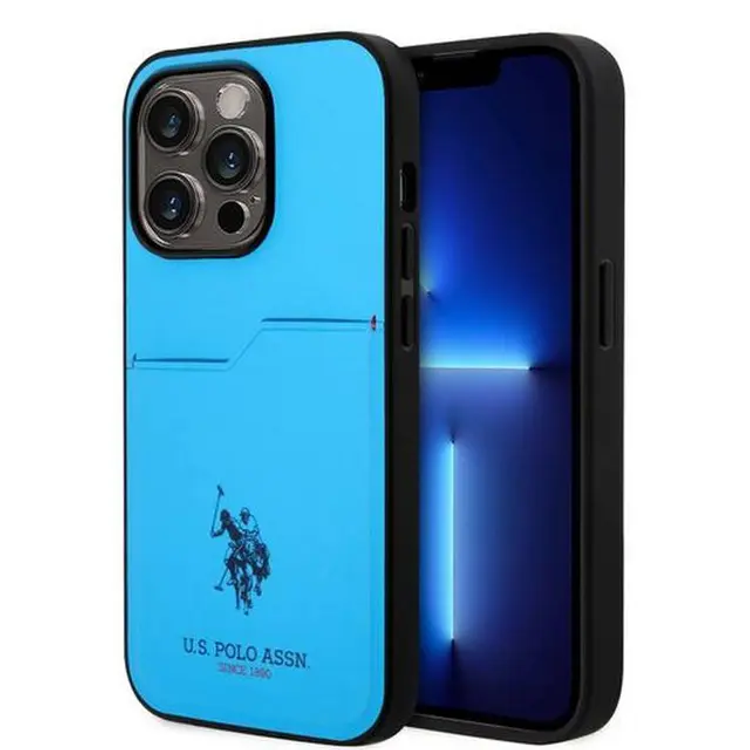 يو اس بولو اسن. كفر حماية صلب بفتحة بطاقة PU - أزرق - لهاتف iPhone 15 Pro Max